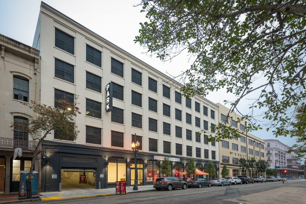 618 Magazine Street is a 280-space, six-story, one-way double helix parking garage. The structure contains 117,000 square feet of parking and 5,800 square feet of ground-floor retail space. It is located on a tight site between two existing historic buildings on one of the busiest streets in downtown New Orleans for both pedestrian and vehicular