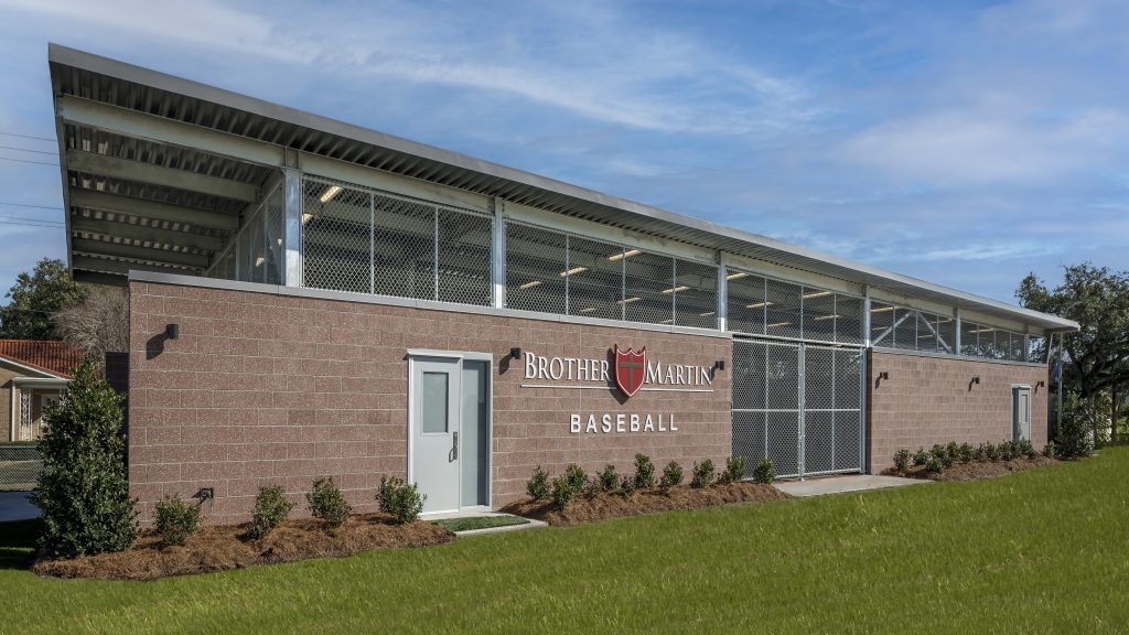Gibbs Construction recently completed the impressive Brother Martin High School Batting Facility, marking a significant addition to the school’s athletic infrastructure. Spanning a single story and a spacious 3,745 square feet, this state-of-the-art facility boasts three bays, offering ample space for athletes to hone their skills.